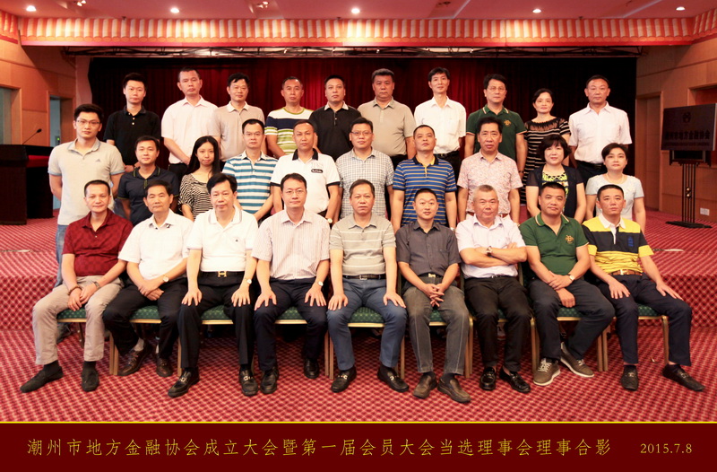 2015年7月8日上午10:00,潮州市地方金融协会成立大会暨第一届会员大会在潮州大道中银大厦3楼顺利召开,市金融工作局领导、市民政局领导、协会名誉会长、各县区金融工作部门领导及工作人员、来自市各融资性担保公司和小额贷款公司的会员代表、新闻界人士共计30多人出席此次会议。会议邀请知名媒体人士张荆前来主持。潮州市地方金融协会的成立,对于增强我市小贷行业的凝聚力、促进小额贷款公司依法合规经营、提高从业人员的业务水平和专业素养、为地方金融行业与政府和社会各界搭建一个畅通有序的交流平台具有十分重要的意义。